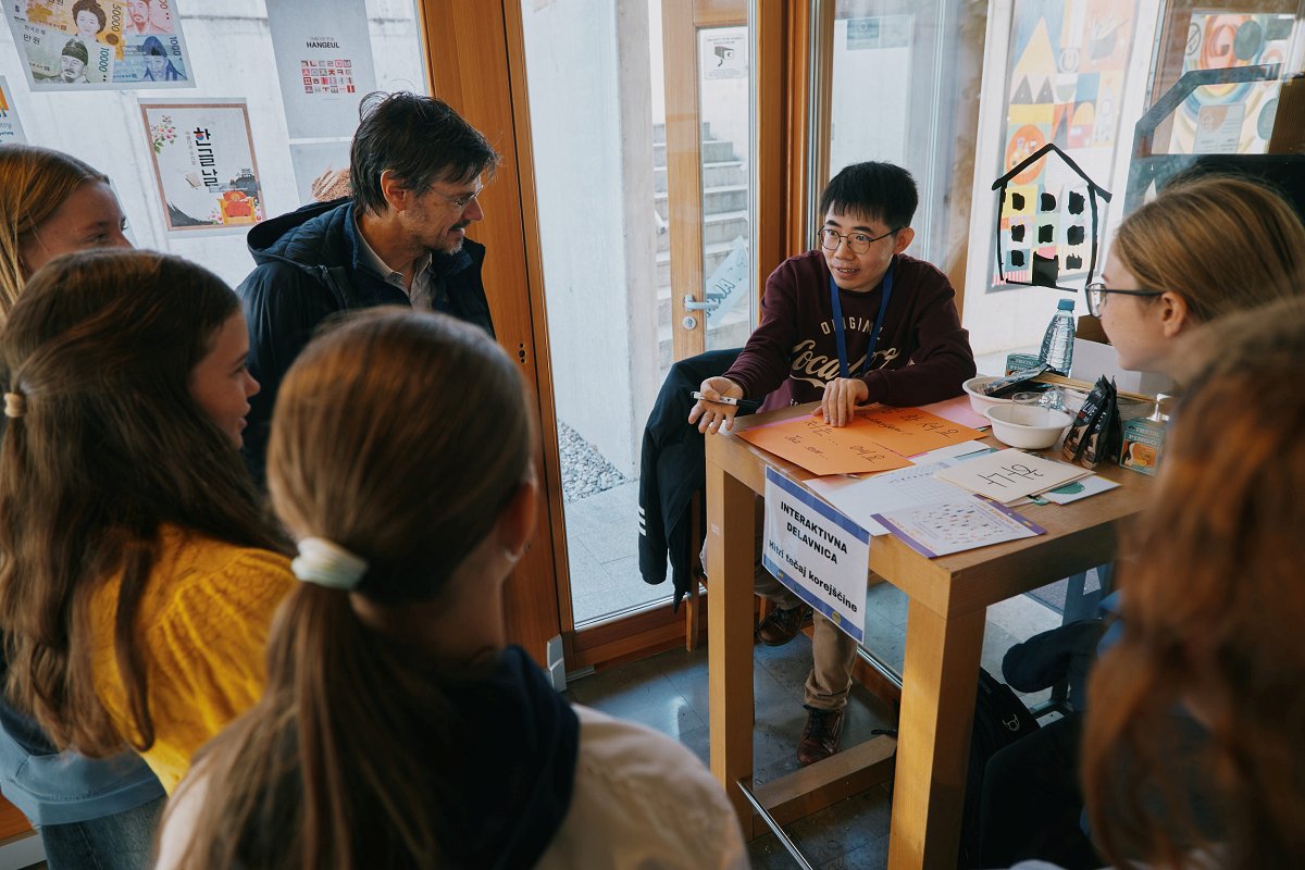 - najbolj obiskane stojnice na Bazarju – Hitri tečaj korejščine s prostovoljcem Jun Zhangom, policijska stojnica in stojnica Elekrotehniške in računalniške šole Nova Gorica,